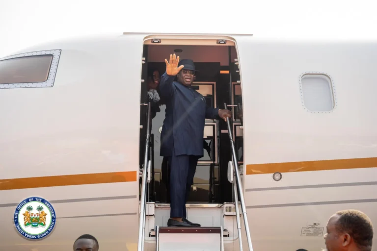 State House, Freetown, 6 January, 2025– His Excellency President Julius Maada Bio departed Freetown today for Accra, Ghana, to attend the inauguration ceremony of Ghana’s President-Elect, His Excellency John Dramani Mahama. This historic occasion celebrates Ghana’s enduring commitment to democratic values and political transitions, serving as a beacon of hope and inspiration for the African continent.