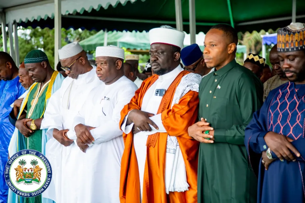 Presidential Lodge, Freetown, Friday, 6 June 2025 – His Excellency President Dr Julius Maada Bio today joined Muslims across Sierra Leone and around the world in observing the Eid-Ul-Adha prayer, one of the most sacred festivals in Islam.