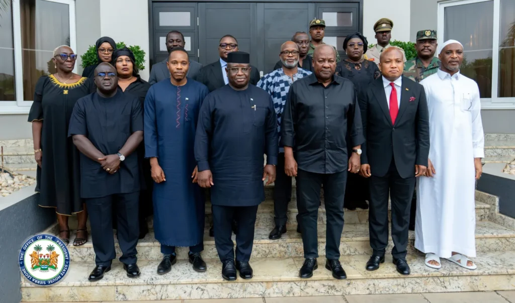 Accra, Ghana, 8th August 2025 – His Excellency Julius Maada Bio, President of the Republic of Sierra Leone and Chairman of the ECOWAS Authority of Heads of State and Government, has paid a condolence visit to his friend and brother, His Excellency John Dramani Mahama, President of the Republic of Ghana, following the tragic helicopter crash that claimed the lives of eight citizens.
