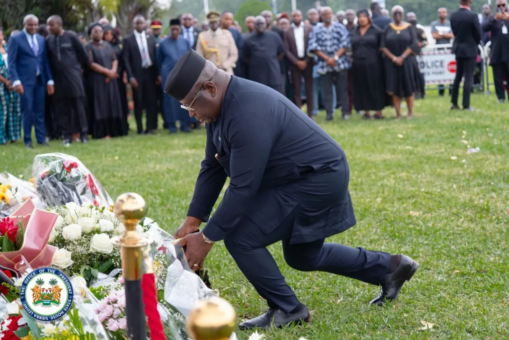 Earlier in the day, President Bio visited Jubilee House, where he laid a wreath and signed the book of condolence.