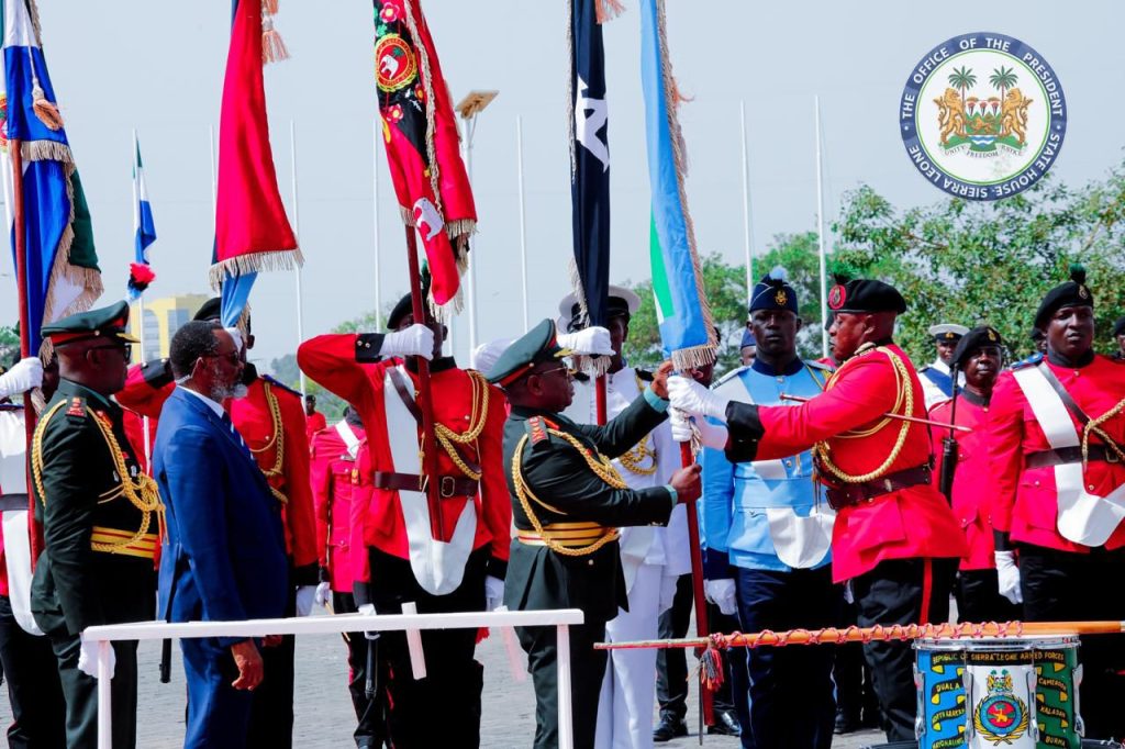 In a ceremony marked by military tradition, President Bio also presented new Presidential and Regimental Colours, the highest symbols of honour for the Services, Formations, and Units of the RSLAF.