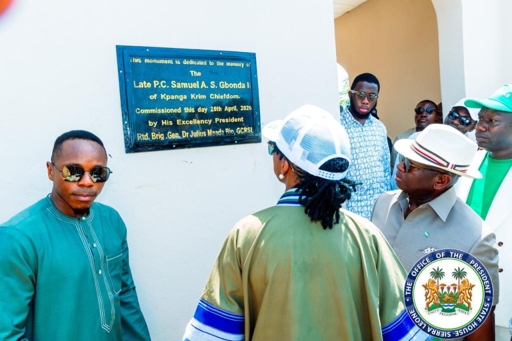 Kpanga Krim Chiefdom, Pujehun District, Saturday, 25 April 2026 – His Excellency President Dr Julius Maada Bio has commissioned the 25km Bandajuma–Pujehun Road, the Julius Maada Bio Bridge, and the newly completed Gobaru Monument, while also launching the construction of the Pujehun–Gbondapi Road as part of his government’s ongoing infrastructure and food security agenda.
